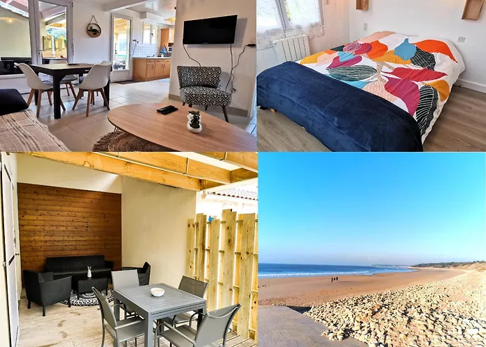 プラ-ジュ・デュ・ヴェイヨンから4.8km離れたEntre Mer Et Foret 2はテラス付き1のベッドル-ムの宿泊施設です. またソファ,コ-ヒ-/紅茶メ-カ- と高速インタ-ネットのある客室内には,電子レンジ,電気ポット と冷蔵庫を備えた器具でいっぱいの台所があります.
